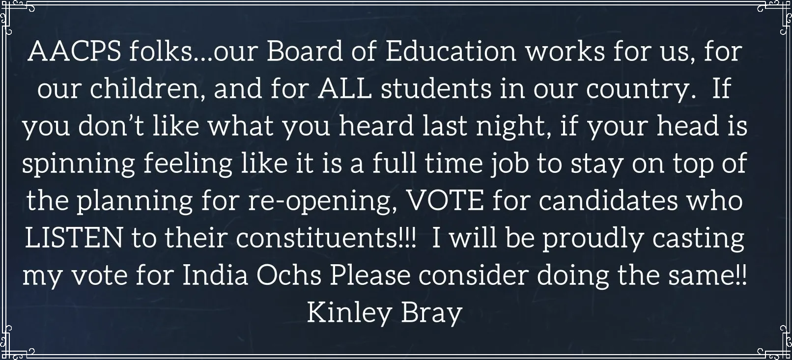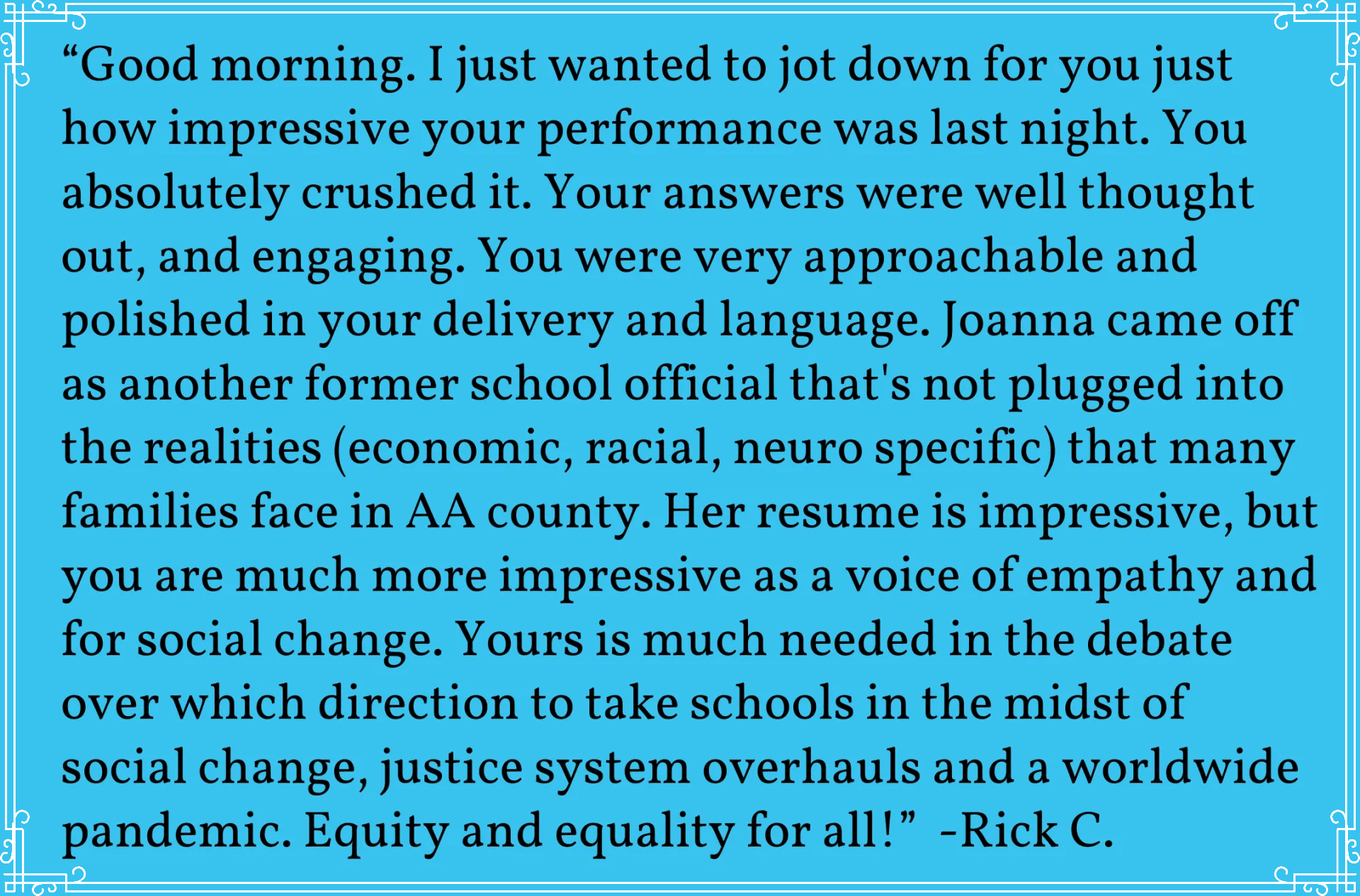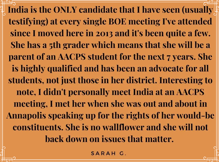 Endorsed by Former Alderman Cynthia Carter, first African-American Woman Elected to Annapolis City Council